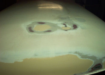 mit einem 2 Komponenten Spachtel werden die geschweißten Stellen wieder in Form gebracht und geglättet