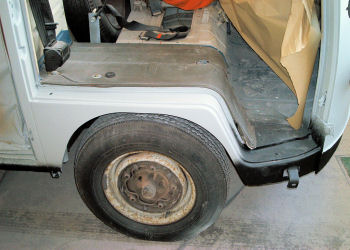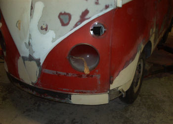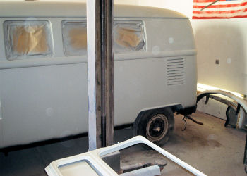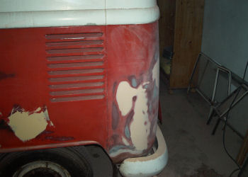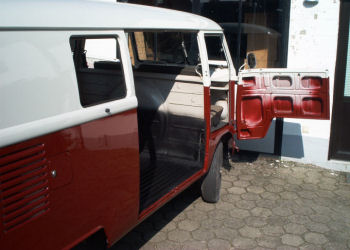nach den Schweißarbeiten und dem Grundieren sah die Seitentür wieder super aus...............