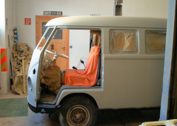 zuerst eimal das weiß.....unser Bulli soll ja die Orginalfarben wieder erhalten.......dann rot....