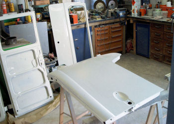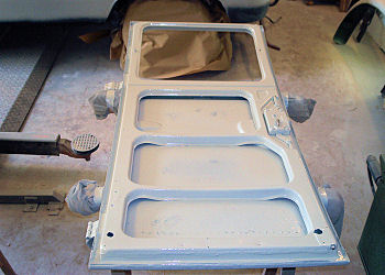 Die Türen waren nun geschweißt und wurden dann mit einem 2 Komponenten Füller grundiert.